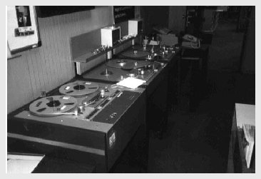Reel-to-reel taperecorders for logging and prerecorded material.
